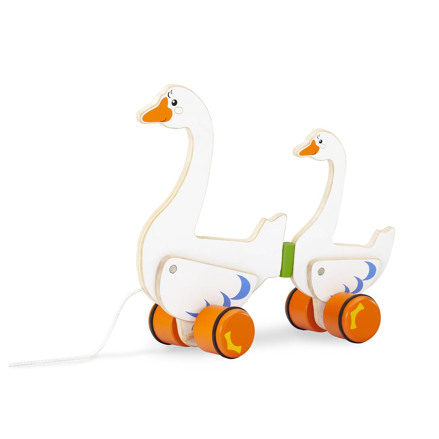 These cute little pull toys are absolutely adorable. They are made from organic rubberwood and non-toxic water based paints as well as biodegradable fabrics, so they are 100% safe for your organic bunch.